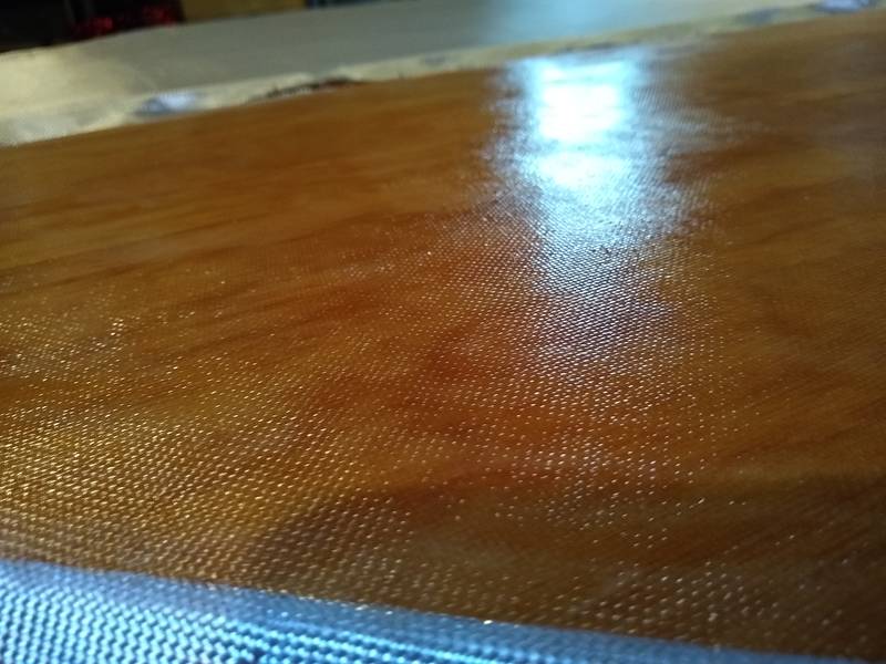 A close-up of a perfect application where the cloth is fully wetted, yet without any pooling of the epoxy.