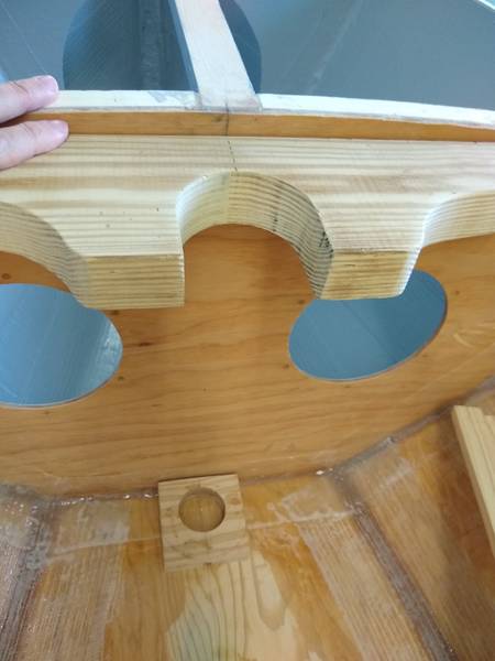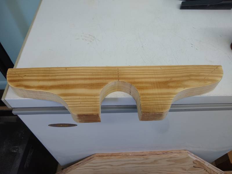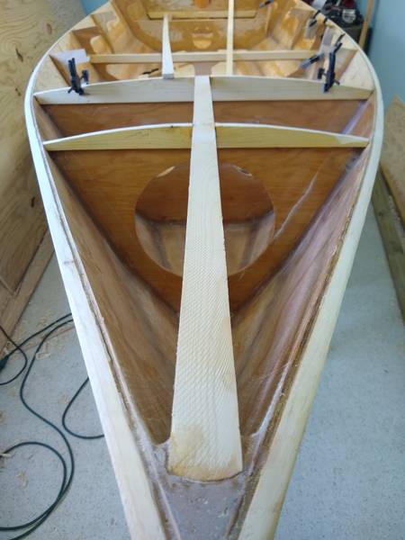 The plans called for three laminations of 1/4" plywood, but I was running low and need it for the decks, so I went with solid pine lumber and hope the fiberglass will give it enough strength.