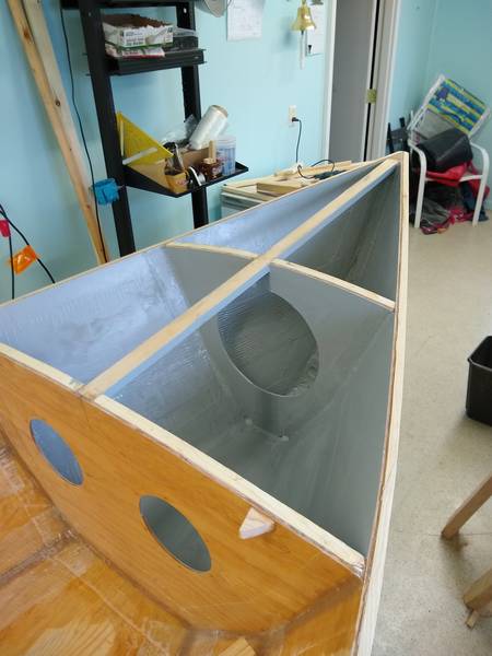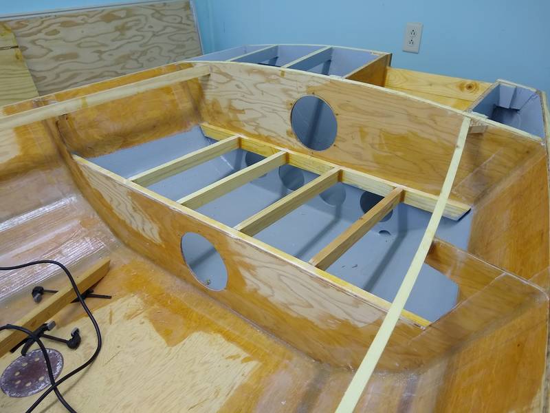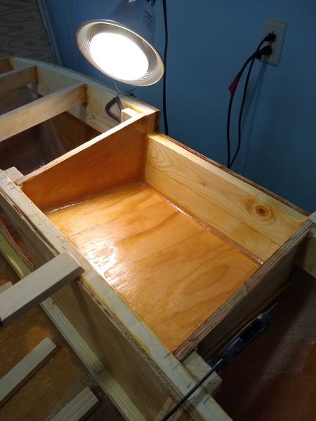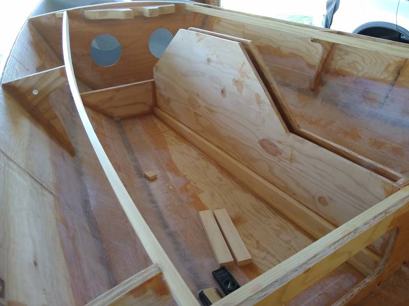 I'm still debating with myself whether to fiberglass it in or not. The plans don't call for it, but I'd like to know it was extra secure. This should be the last of the stress - after this, there isn't much that I can mess up.