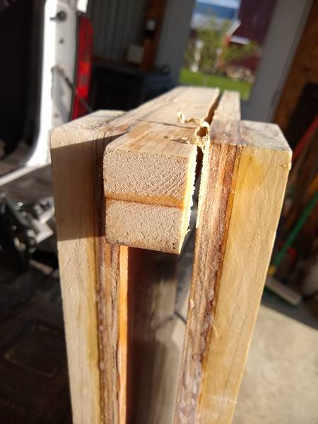 New end posts cut square from some 2x4's I had laying around. Glued it all back together and I'm very happy with the measurements this time.