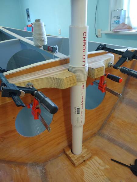 I'm getting ready to install the mast partner and I want to get the measurements perfect. There should be a 5 degree back angle, so I mocked up this "test" mast from some spare pvc to see how it will look. The actual mast will be slightly thicker, but this is a good visual.
