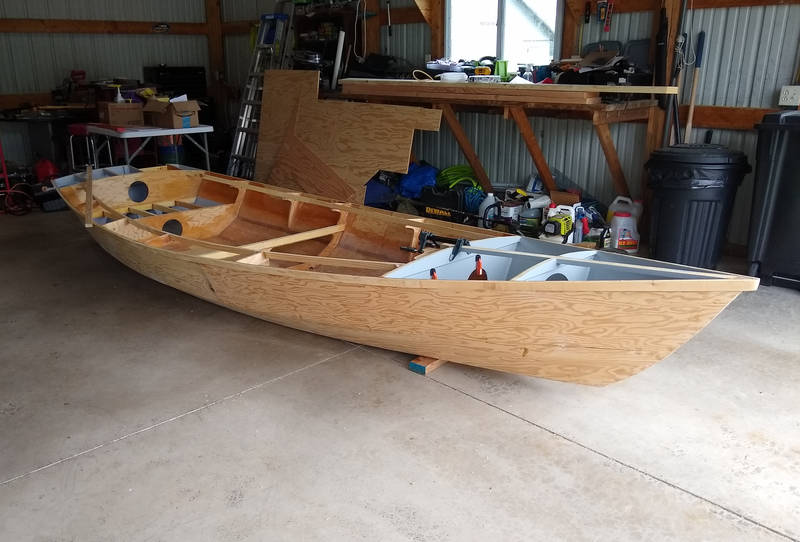 This is what the centerboard case will look like once it's glued and screwed into the boat. It sure adds some weight, though.