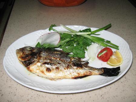 It would seem the weather has it in for me. Rain again this morning, so I´ll just write a little and upload another photo. This one is the dinner that Angelo cooked with the fish that İ bought at the local fish market. Leaving the head and skin on is the standard way to prepare fish here. So while it looks a bit unpalatable, it was actually very good - tender and juıcy. Of course, your scrape off the skin and don´t eat the head but that should go without saying.